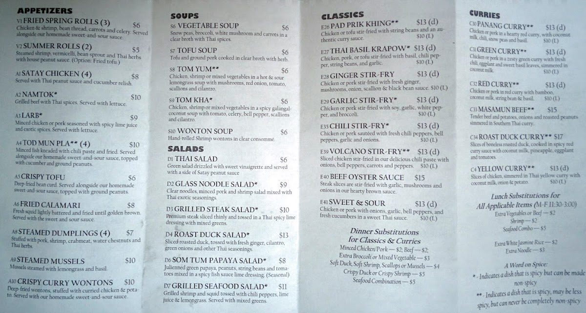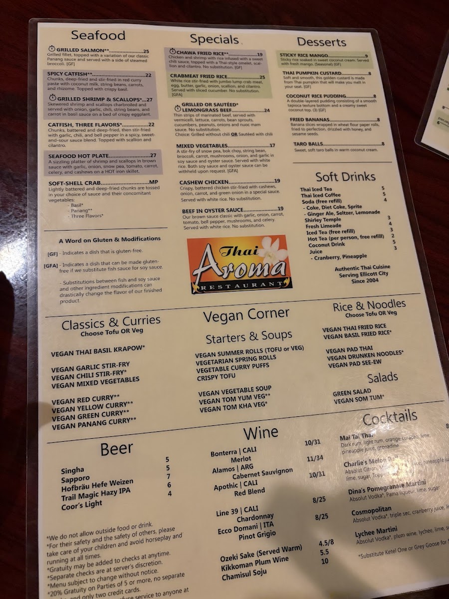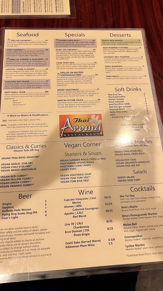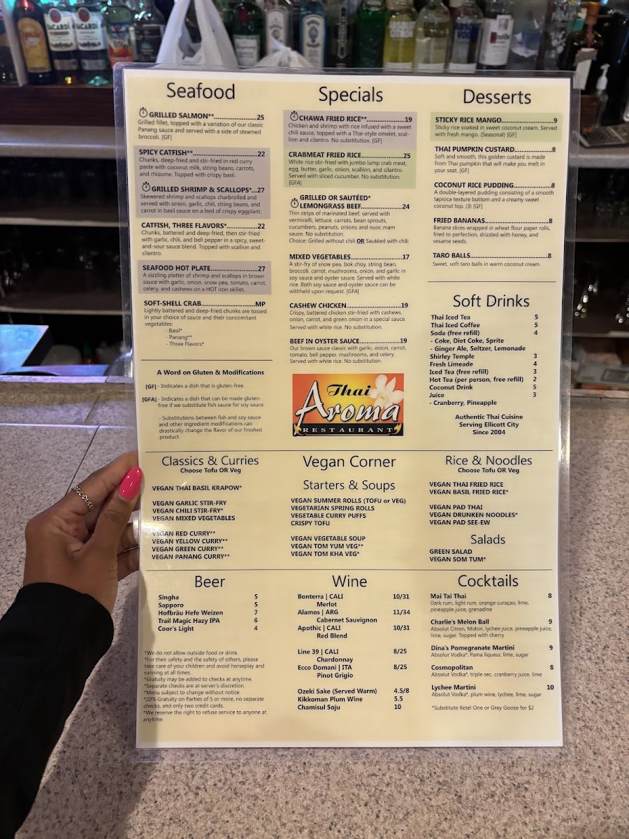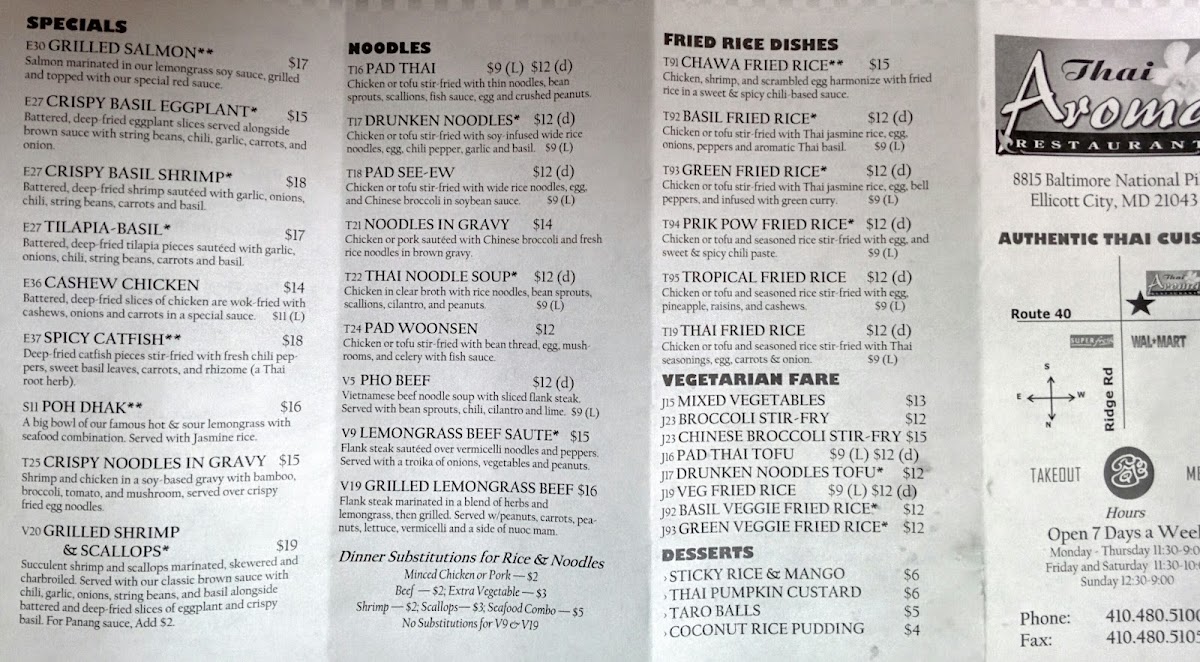 If you're in the mood for a flavorful journey, the Thai Aroma Restaurant Menu offers an incredible selection that will leave your taste buds wanting more. Nestled in Ellicott City, MD, at 8815 Baltimore National Pike, this spot is a hidden gem for anyone craving authentic Thai cuisine. Each dish is crafted with fresh ingredients, bursting with bold flavors, and a perfect balance of sweet, sour, salty, and spicy. Whether you're enjoying a comforting bowl of Tom Yum soup or diving into a sizzling Pad Thai, every bite brings something special. The menu features a variety of options, including vegetarian and gluten-free choices, making it perfect for all kinds of diners. With every meal prepared with care and attention to detail, the Thai Aroma experience is more than just dining-it's a celebration of Thai culinary tradition.